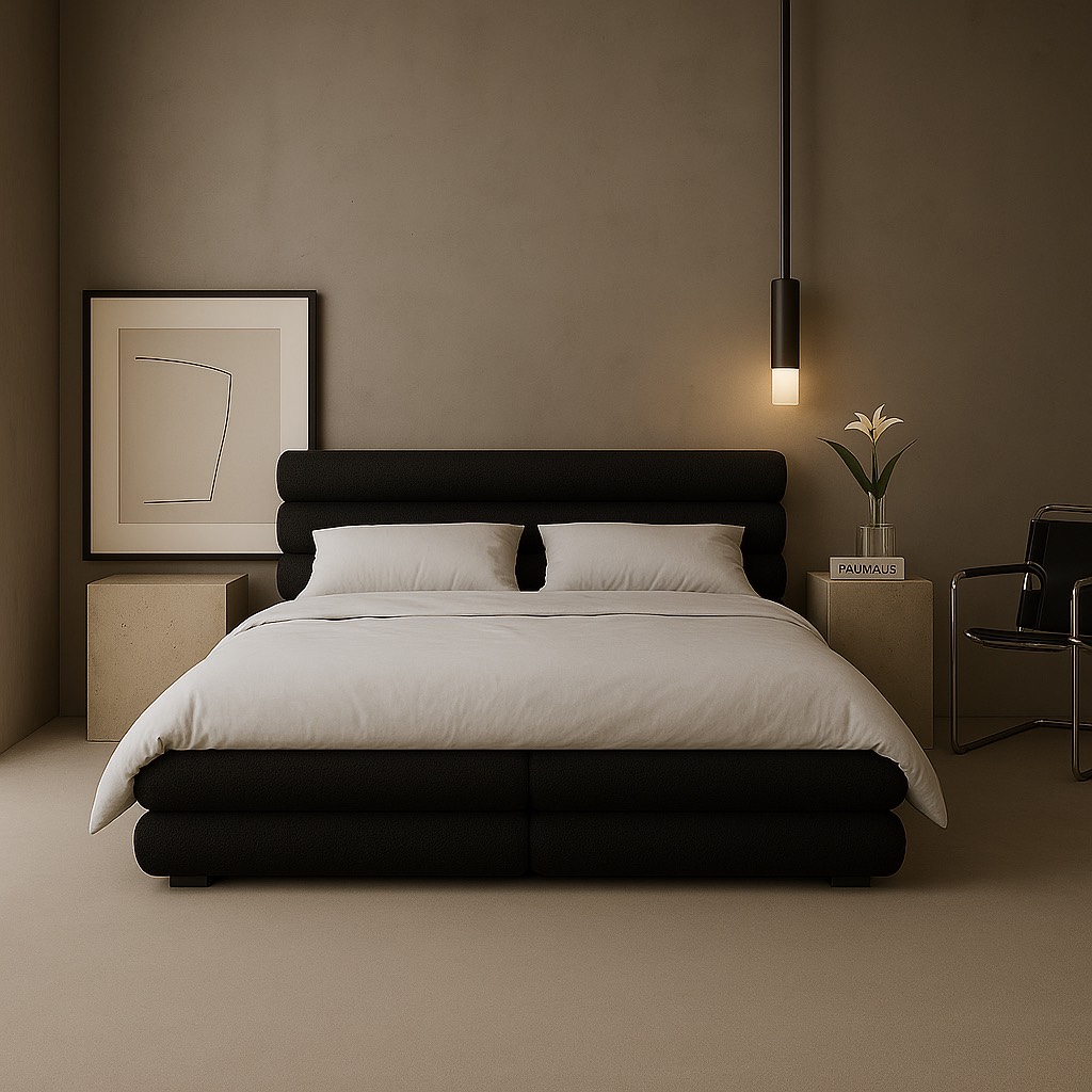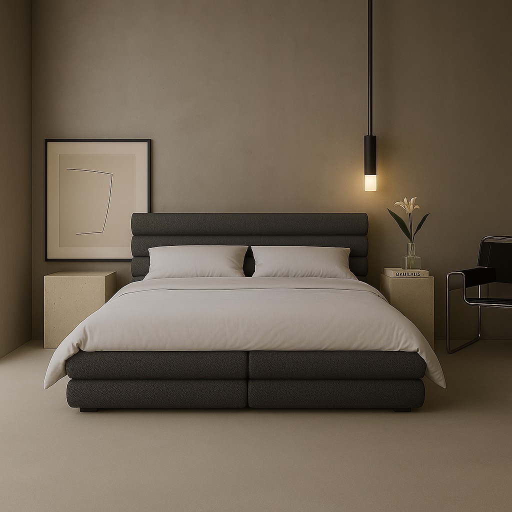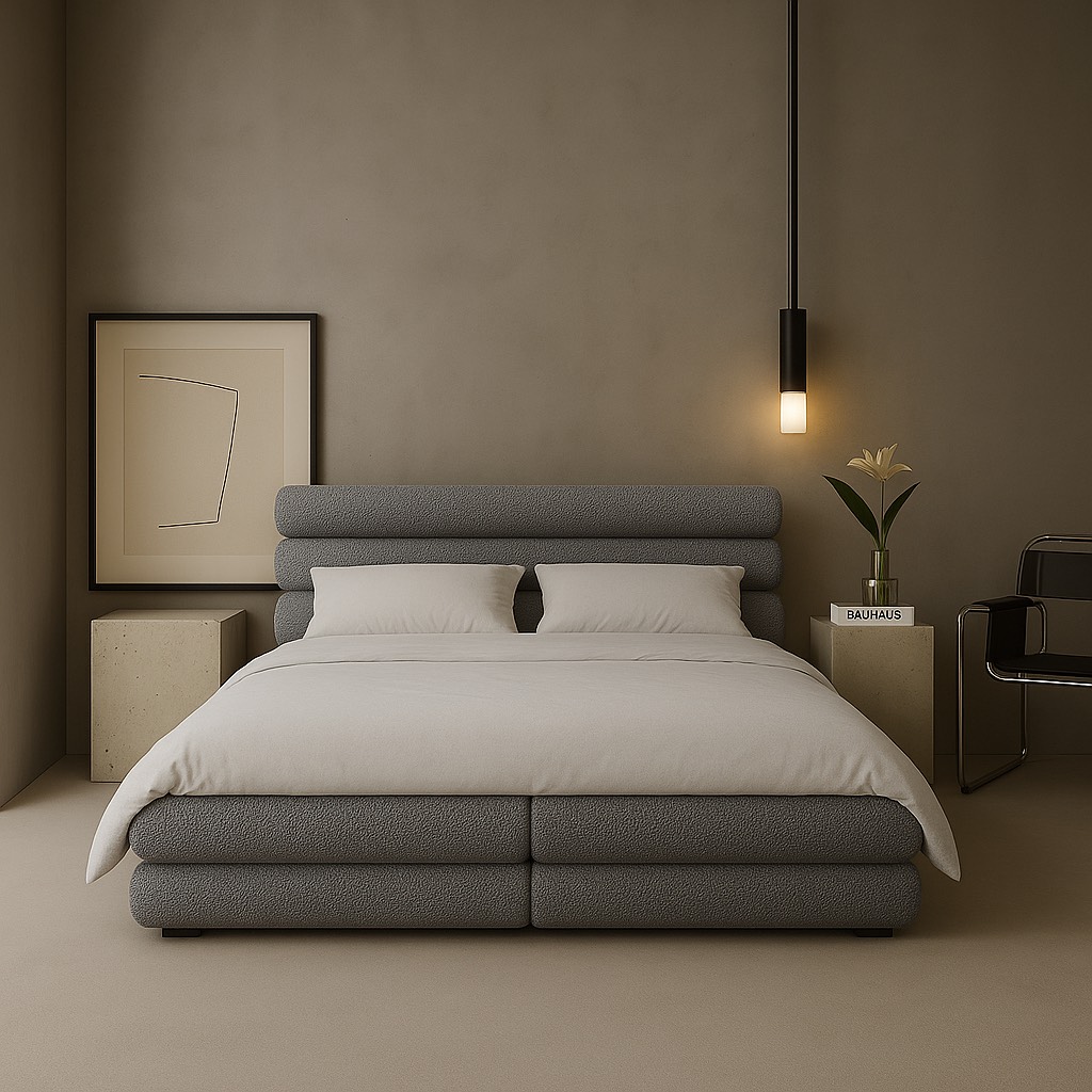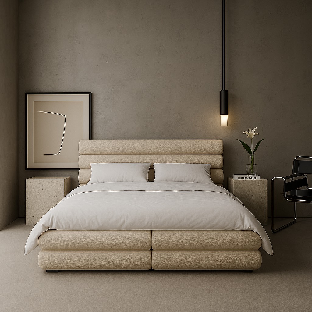 Łóżko, które łączy miękką architekturę z ponadczasowym minimalizmem. Harmonijne proporcje, obłe formy i luksusowa tkanina tworzą przestrzeń, w której ciało naprawdę odpoczywa. Subtelna elegancja, która koi zmysły każdego dnia.