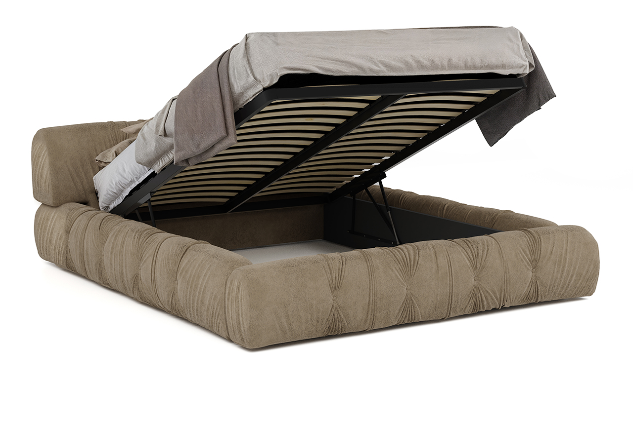 Organiczne, miękko układające się linie i subtelnie marszczona tkanina tworzą efekt naturalnej elegancji, który natychmiast przyciąga wzrok. Harmonijna forma, inspirowana spokojem resortowych wnętrz, otula ciało i zmysły, wprowadzając do sypialni atmosferę wyciszenia i wysokiej estetyki.